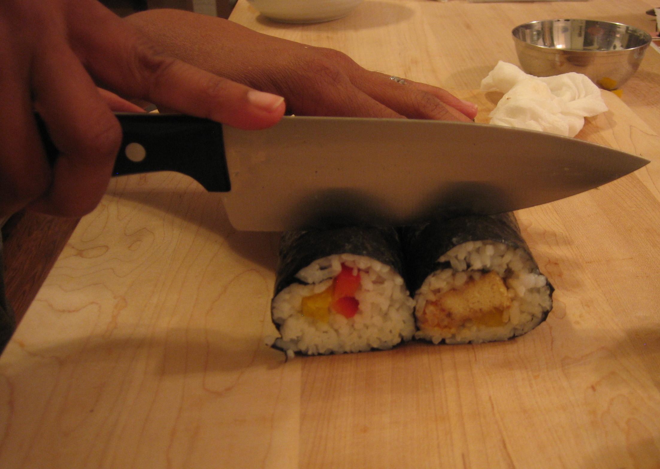 cutting veggie sushi